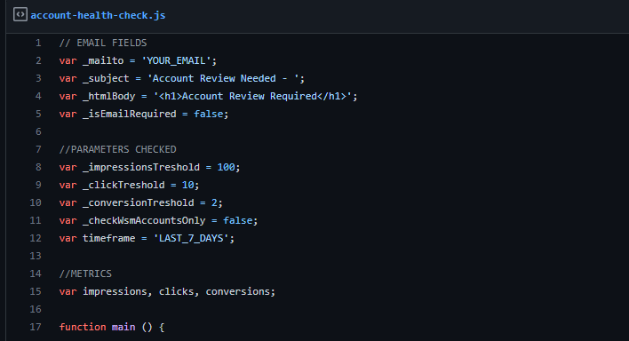 Google Ads script for account management